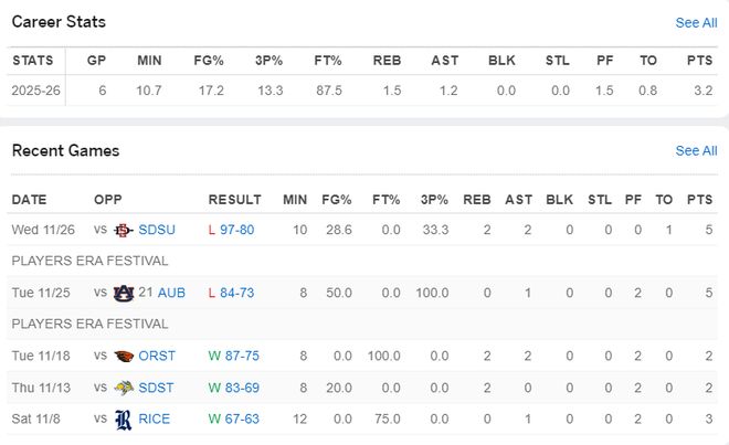 林葳前6场比赛都出战了,场均10.7分钟,拿到3.2分1.2助攻1.5篮板0.8失误0抢断0盖帽,命中率17.2%,三分命中率13.3%。不得不说这个表现跟他在CBA有着天壤之别,合计就是6场比赛29中7,三分15中2,Dana Altman弃用他没有一点问题,如此糟糕的表现继续用不是对队内其他努力的球员失公允吗?
