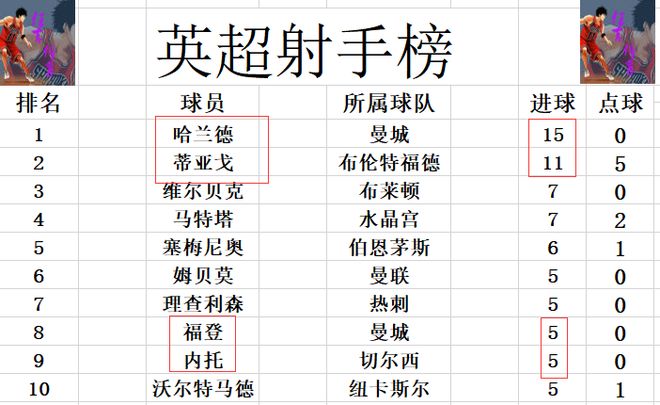 射手榜方面,哈兰德15球高居榜首,蒂亚戈今天替补登场无力破门,本轮是被哈兰德拉大了差距,4球之差位列第2。维尔贝克,马特塔7球并列第3,塞梅尼奥6球排在第5。内托今天打入一球后,追上姆贝莫,福登等人,将前十门槛提高到5球。